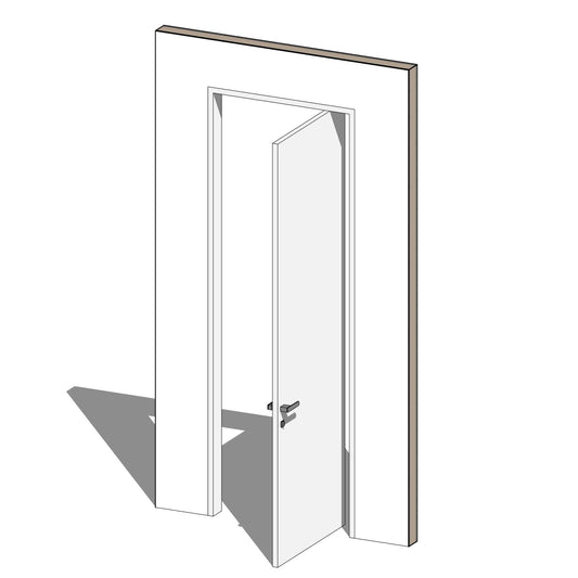 Optional architraves in all BIMcraftHQ door families can be enabled and adjusted in length and width. Additional intelligence has been included to detect when the frame does not align with the edge of the wall, disabling the visibility of the interior and exterior architraves automatically.